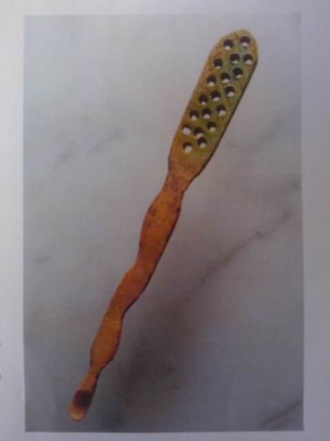 Após o post sobre a evolução da escova de dentes, encontrei esta bela imagem… uma das primeiras escovas europeias que serviu de base para as escovas que se utilizam actualmente, com a curiosidade que enquanto uma das extremidades era utilizada para escovar os dentes, a outra era utilizada para higienizar os ouvidos… digamos que era uma espécie de “cotonete”.