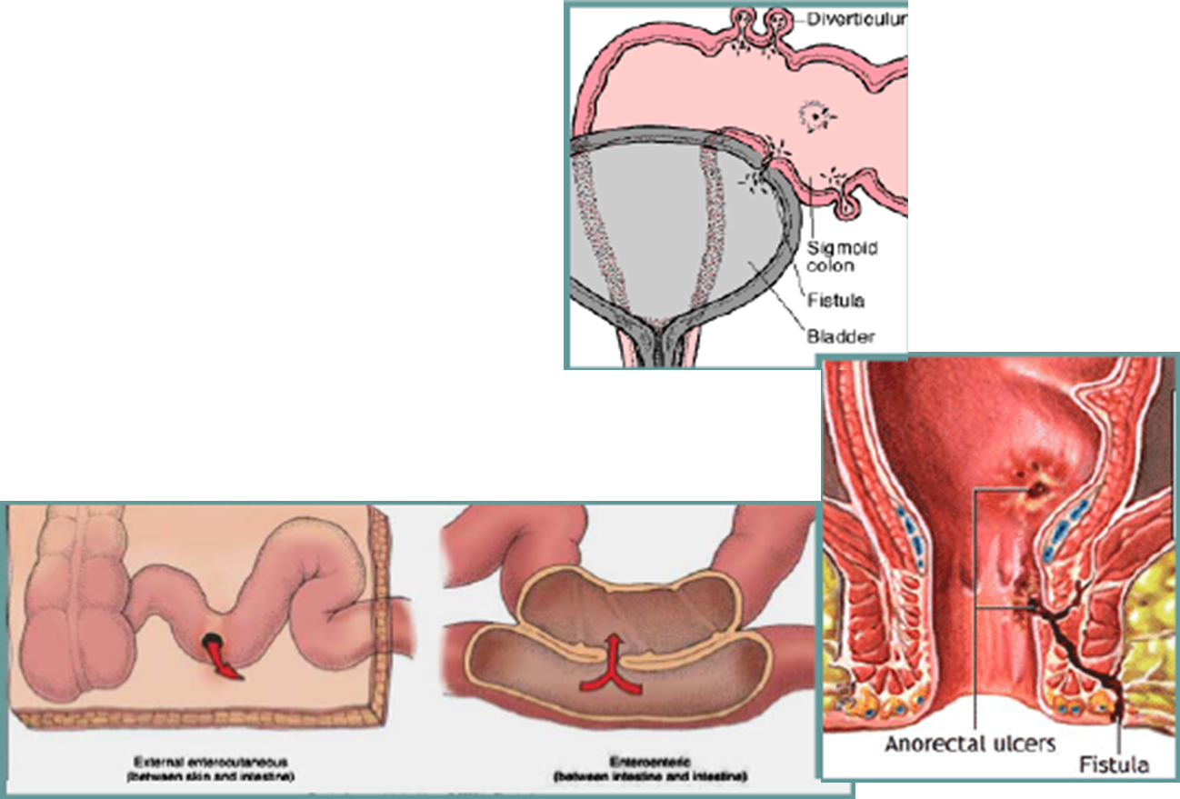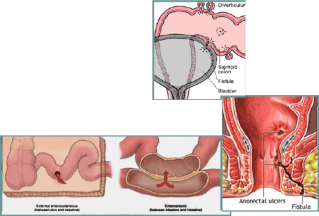 – Manifestações extra-intestinais, (O médico pode, na palpação, sentir uma tumefacção ou uma sensação de preenchimento na parte baixa do abdómen)